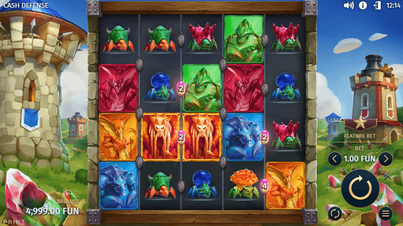 Cash Defense เป็นเดมสล็อตที่ มี 5 รีล และมี 4 แถว มาพร้อมฟีเจอร์ Mini TD และฟีเจอร์ Grand TD Bonus หากสัญลักษณ์ Mini TD ปรากฎในรีลที่ 5 จะเข้าสู่ฟีเจอร์ Mini TD เกมจะมีหอคอยให้คุณ 2 หอคอย สัญลักษณ์ 10 สัญลักษณ์ และศัตรูโบนัส 1 ตัว คุณต้องกำจัดศัตรู เพื่อรับโบนัสจากฟีเจอร์นี้ไป คุณจะเข้า ฟีเจอร์ Grand TD Bonus ของเกม Cash Defense สัญลักษณ์ Bonus ปรากฎบนกระดาน 3 สัญลักษณ์ ในฟีเจอร์ Grand TD Bonus คุณจะมีหอคอย ไว้กำจัดศัตรู และศัตรูจะมา 2 รอบ รอบแรกจะมีศัตรู 10 สัญลักษณ์ ต้องกำจัดอย่างน้อย 5 สัญลักษณ์ เพื่อเปิดใช้งานรอบที่ 2 และรอบที่ 2 จะมีศัตรูทั้งหมด 50 สัญลักษณ์