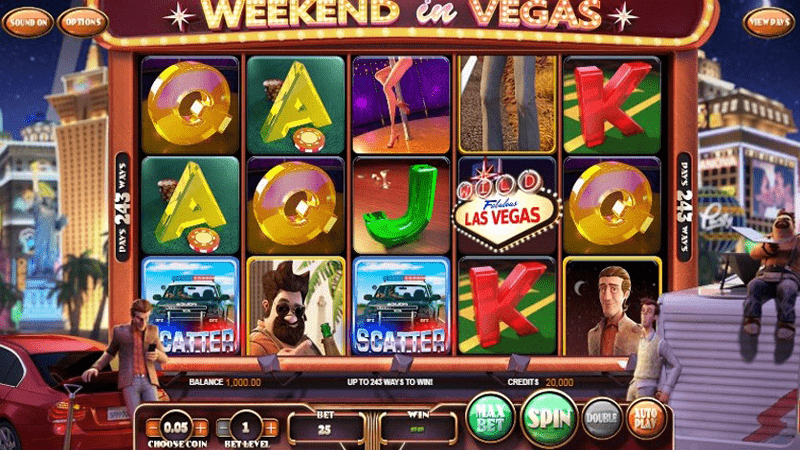 Weekend in Vegas โดย Betsoft เป็นสล็อตที่มีความผันผวนปานกลางซึ่งได้รับแรงบันดาลใจจากภาพยนตร์ยอดนิยมเรื่อง "The Hangover" เข้าร่วมกับเพื่อน 3 คนในการผจญภัยสุดมันส์เมื่อคุณหมุนวงล้อในเกม 5 รีล 3 แถวนี้ ออกแบบด้วยภาพ 3 มิติอันตระการตา มี 243 วิธีที่จะชนะ รับรางวัลมากถึง 1,210,500 เหรียญ เมื่อคุณเล่นบนเดสก์ท็อป แท็บเล็ต หรืออุปกรณ์มือถือ คุณสมบัติที่ให้ความบันเทิงแก่คุณ ได้แก่ ไวด์ สแกตเตอร์ ฟรีสปิน และรอบโบนัส อ่านต่อเพื่อค้นหาสิ่งที่คุณต้องรู้เกี่ยวกับสล็อตแมชชีน Weekend in Vegas